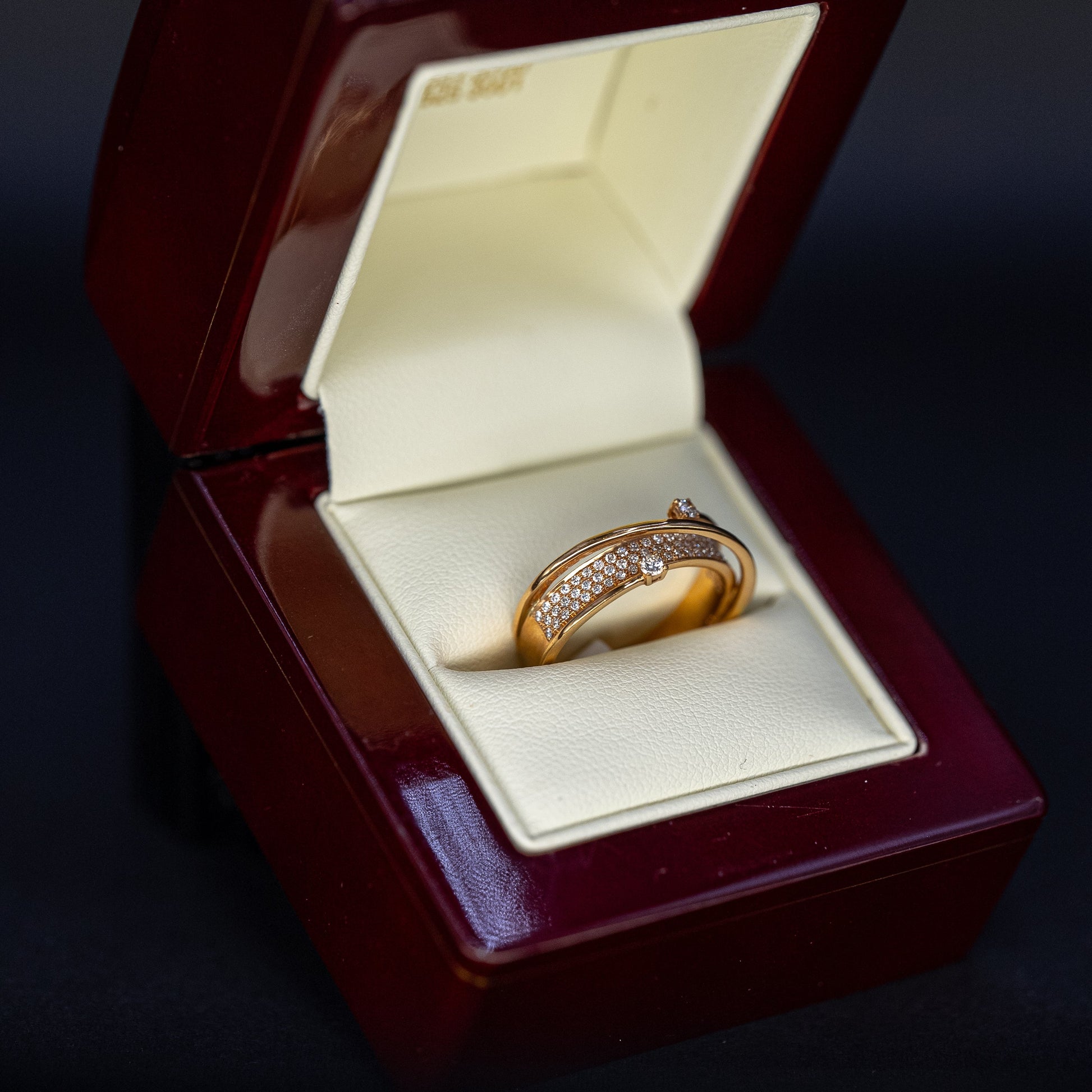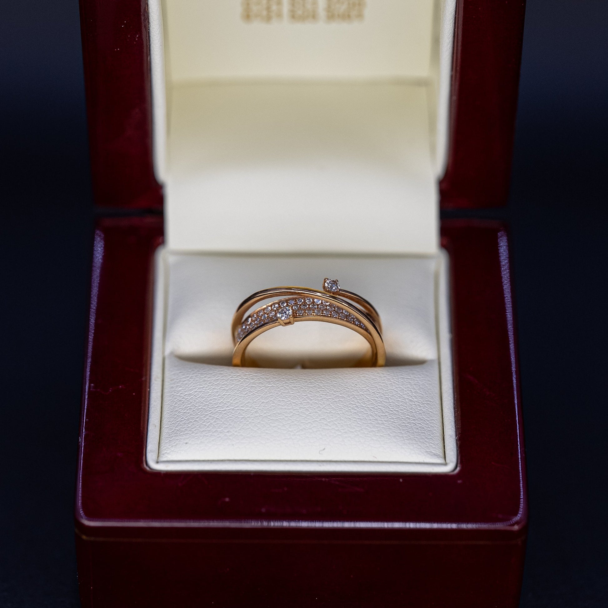 An elegant 18ct white gold ring featuring a 0.31ct diamond arrangement. The ring shows a detailed split-style band with a row of small diamonds set along one side, paired with a raised central setting of studded diaionds that adds height and definition. The combination of fine pavé stones and the central diamond-studded band gives the ring a balanced sparkle that works well for engagements, weddings and festive occasions.