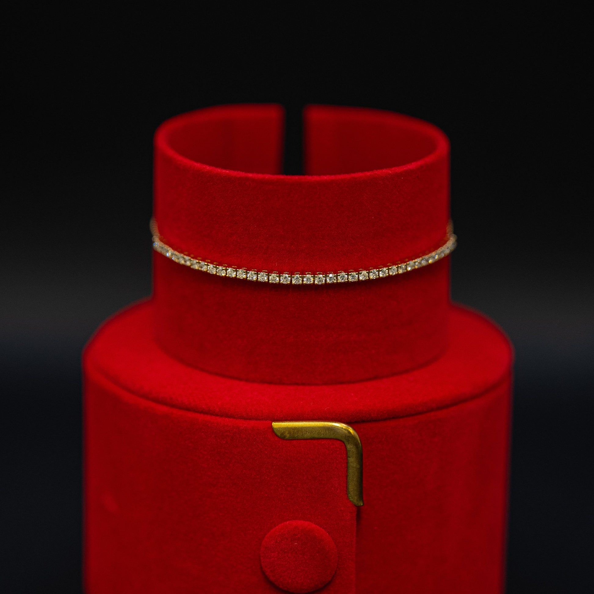 A classic 18ct yellow gold bracelet lined with 0.76ct of brilliant cut diamonds. The slim profile makes it suitable for everyday wear.