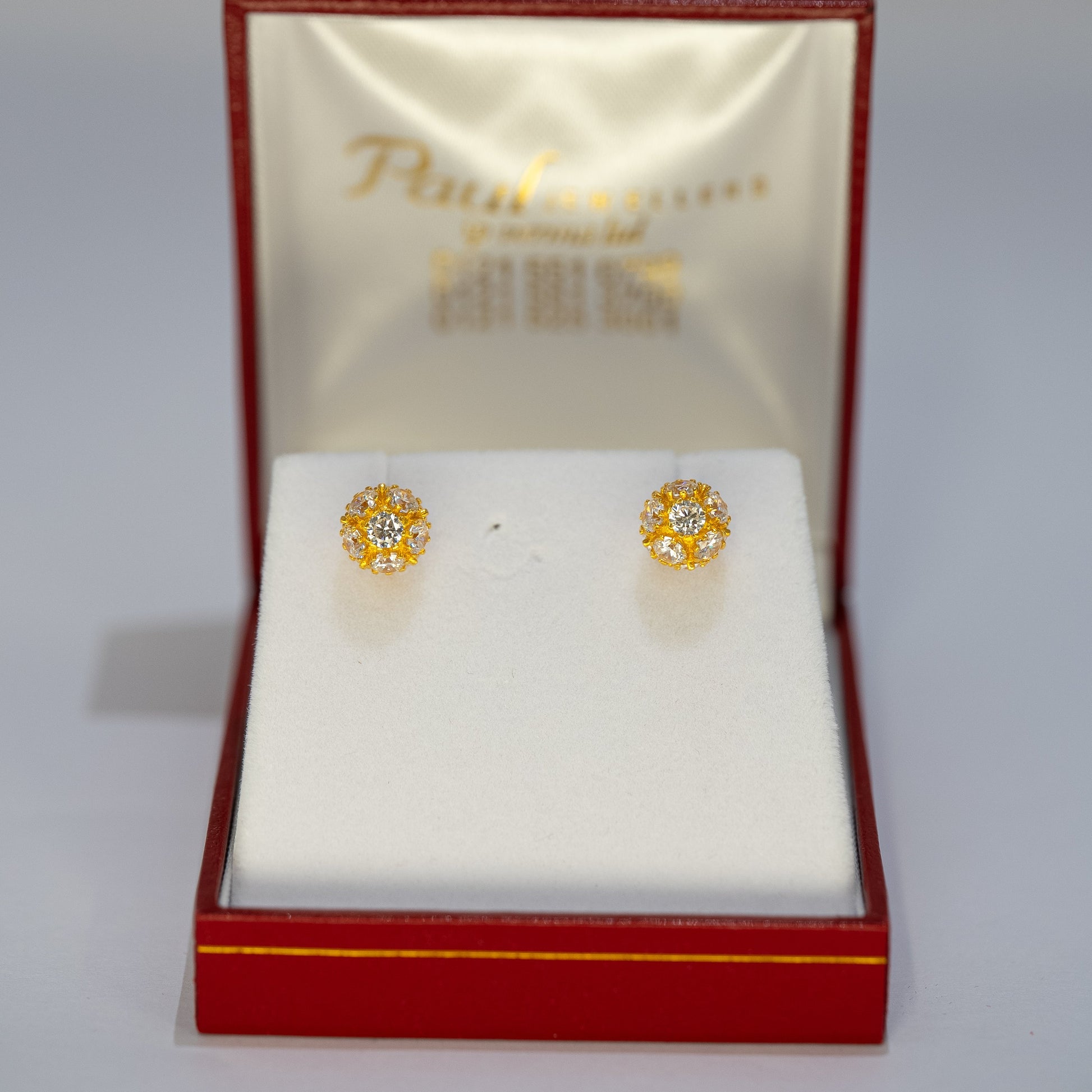 A stunning pair of 22-carat gold stud earrings featuring sparkling CZ stones set in a classic cluster design. The rounded setting gives a radiant, diamond-like shine, perfect for adding elegance to both everyday and special looks.