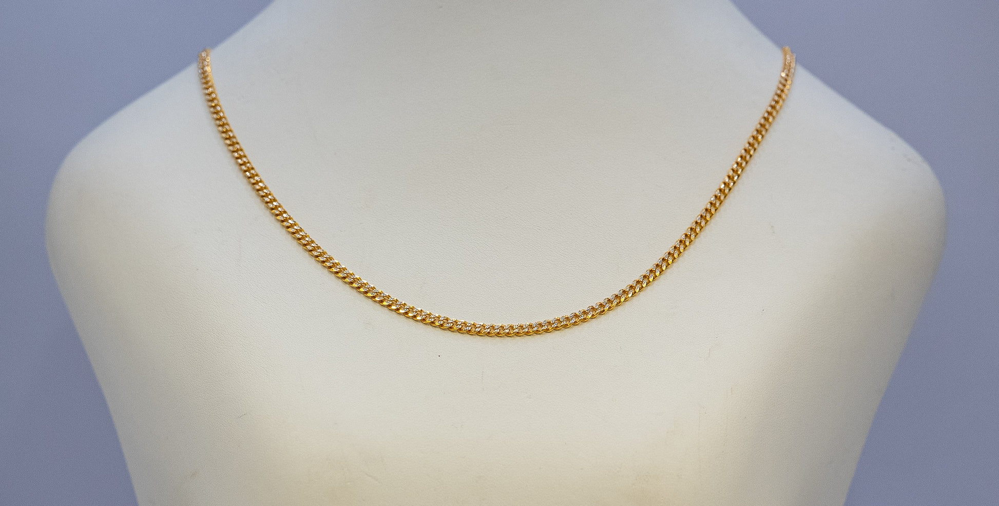 A finely made 22ct gold flat link chain, crafted for a smooth, seamless finish. The flat links sit neatly against the skin, creating a clean, elegant look that reflects light beautifully. Designed for everyday wear, this piece combines durability with understated luxury. It can be worn on its own for a minimal, polished style or paired with a pendant for a classic touch.